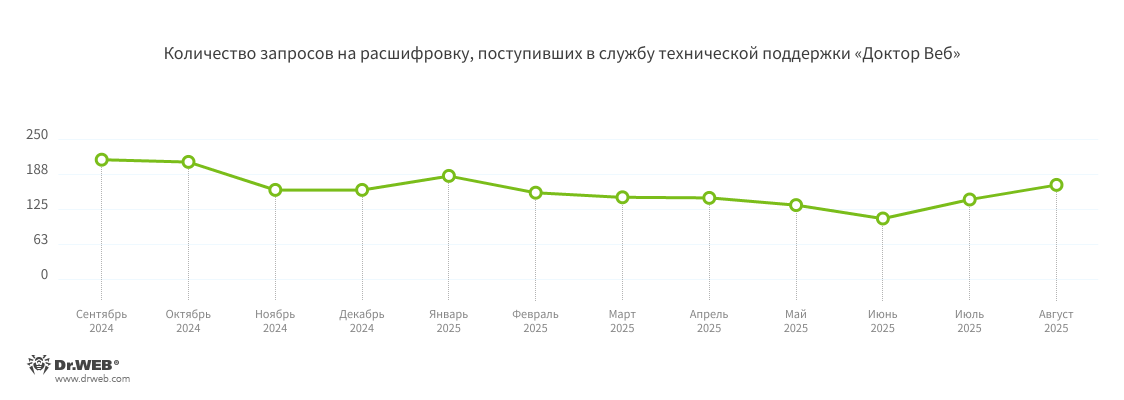 Динамика поступления запросов на расшифровку в службу технической поддержки «Доктор Веб»: